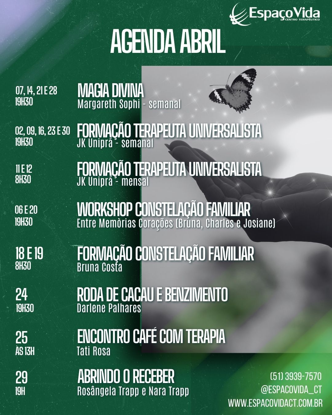 Atividades, Cursos e Eventos no Espaço Vida Centro Terapêutico.
